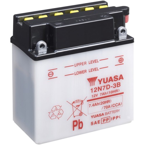 12N7D-3B 12V-7Ah motoakumulátor YUASA. Motobaterie zasíláme suché přednabité. Po naplnění akumulátorovou kyselinou (není součástí balení) a ponechání cca 1 hodinu, je kapacita akumulátoru cca na 70%.