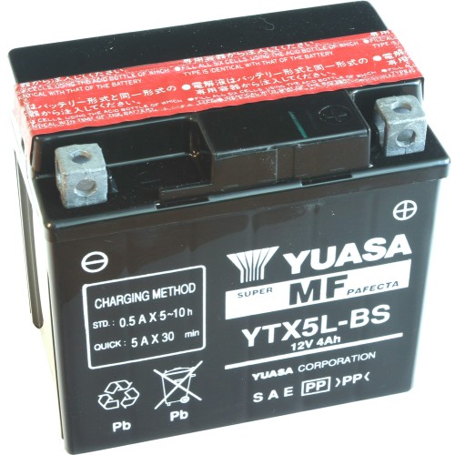 Bezúdržbový (MF) VRLA (bezúdržbový ventilem řízený) akumulátor YTX5L-BS nikdy nepotřebuje doplňování, avšak stále vyžaduje periodické dobíjení! Ideální pro motocykly, jízdní a žací stroje a vodní skútry.