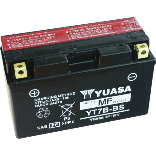 Bezúdržbový (MF) VRLA (bezúdržbový ventilem řízený) akumulátor YTX7A-BS nikdy nepotřebuje doplňování, avšak stále vyžaduje periodické dobíjení! Ideální pro motocykly, jízdní a žací stroje a vodní skútry.