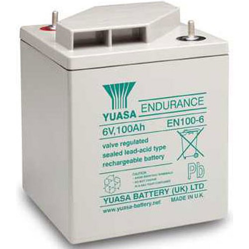 EN 100-6 6V 100Ah - záložní, bezúdržbový, VRLA, uzavřený, akumulátor, výrobce YUASA. Technologie AGM. Určený nejen pro záložní zdroje UPS, EZS, EPS atd.