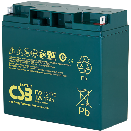EVX12170 12V 17Ah – záložní, bezúdržbový, VRLA, uzavřený, akumulátor od CSB Battery. Technologie AGM. Určený pro cyklický provoz.
