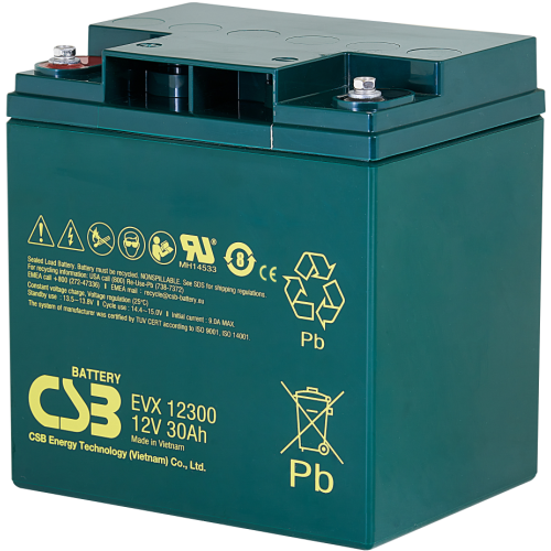 EVX12300 12V 30Ah – záložní, bezúdržbový, VRLA, uzavřený, akumulátor od CSB Battery. Technologie AGM. Určený pro cyklický provoz.