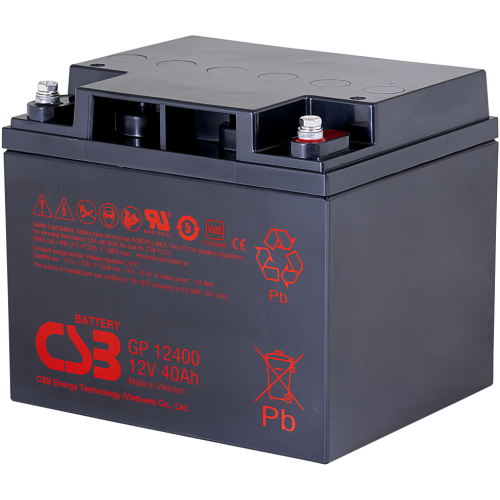 GP12400 12V 40Ah - záložní, bezúdržbový, VRLA, uzavřený, akumulátor od CSB Battery. Technologie AGM. Určený nejen pro záložní zdroje UPS, EZS, EPS atd.