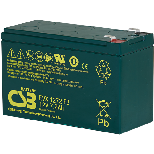 EVX1272F2 12V 7,2Ah – záložní, bezúdržbový, VRLA, uzavřený, akumulátor od CSB Battery. Technologie AGM. Určený pro cyklický provoz.