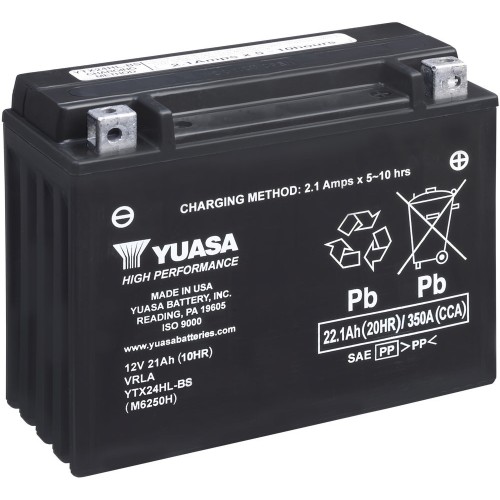 YTX24HL-BS 12V-21Ah bezúdržbový High Performance motoakumulátor YUASA. Motobaterie zasíláme suché přednabité s náplní. Made in USA. Akumulátory High Performance MF mají až o 30% vyšší výkon než běžné bezúdržbové VRLA akumulátory.