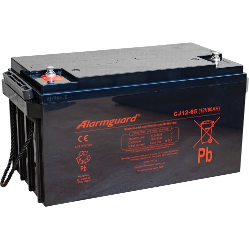 CJ12-65 12V 65Ah - záložní , bezúdržbový, VRLA, uzavřený, akumulátor značky ALARMGUARD. Technologie AGM. Určený převážně pro EZS, EPS.