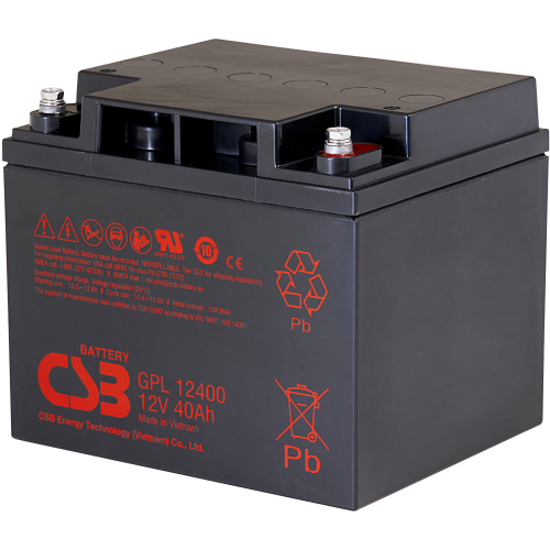 GPL12400FR 12V 40Ah – záložní, bezúdržbový, VRLA, uzavřený, akumulátor od CSB Battery. Technologie AGM. Určený nejen pro záložní zdroje UPS, EZS, EPS atd.