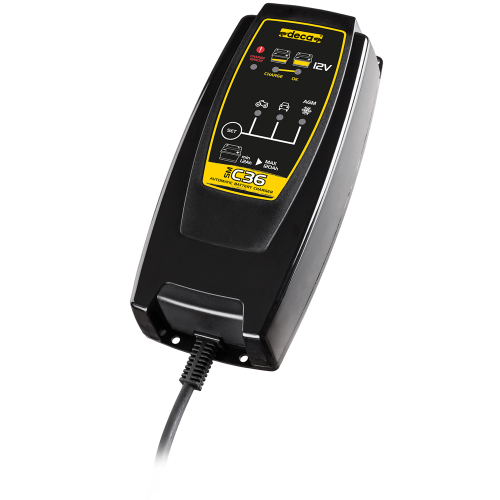 C36 - přenosná automatická mikroprocesorem řízená invertorová nabíječka 12V-3.6A. Výrobce firma DECA. Nabíječka C36 je vhodná pro nabíjení olověných, bezúdržbových (MF), Start-Stop, AGM a gelových akumulátorů o kapacitě 1.2Ah - 75Ah.