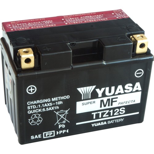TTZ12S-BS 12V-11Ah bezúdržbový VRLA motoakumulátor YUASA. Motobaterie zasíláme suché přednabité s náplní. Akumulátory MF mají o 30% vyšší startovací výkon.