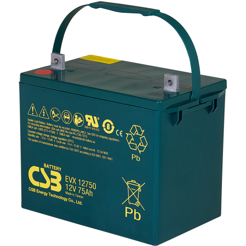 EVX12750 12V 75Ah – záložní, bezúdržbový, VRLA, uzavřený, akumulátor od CSB Battery. Technologie AGM. Určený pro cyklický provoz.
