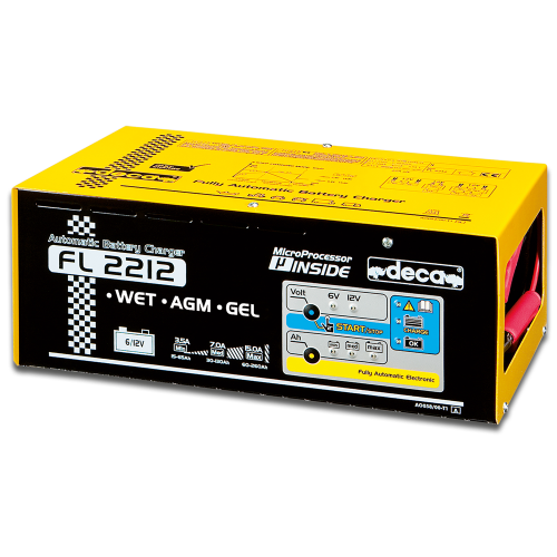 FL 2212 - Automatická mikroprocesorem řízená nabíječka 6V/12V-15A. Výrobce firma DECA. Nabíječka je vhodná pro nabíjení olověných, bezúdržbových (MF), AGM a gélových akumulátorů o kapacite 15Ah - 260Ah