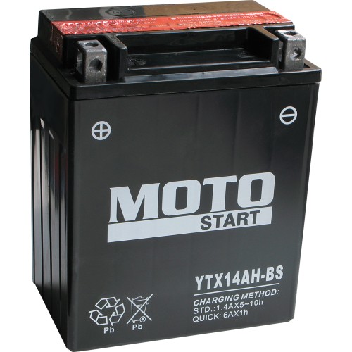 \nBezúdržbový (MF) VRLA (bezúdržbový ventilem řízený) akumulátor YTX14AH-BS nikdy nepotřebuje doplňování, avšak stále vyžaduje periodické dobíjení! Ideální pro motocykly, jízdní a žací stroje a vodní skútry.
