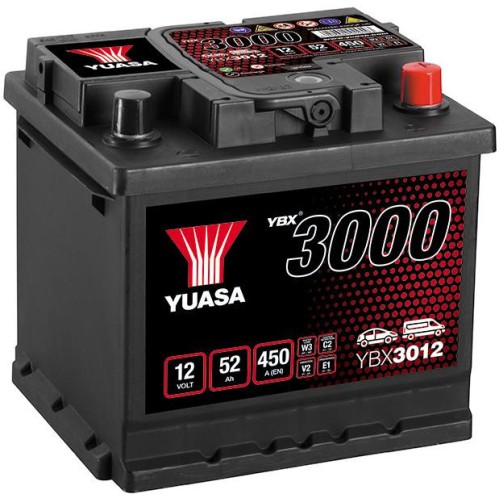 YBX3012 12V-52Ah 450A(EN) bezúdržbová autobaterie YUASA. Bezúdržbové akumulátory dodáváme nalité, nabité. Bezúdržbové autobaterie zasíláme dopravní službou Toptrans!