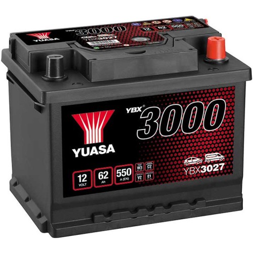 YBX3027 12V-62Ah 550A(EN) bezúdržbová autobaterie YUASA. Bezúdržbové akumulátory dodáváme nalité, nabité. Bezúdržbové autobaterie zasíláme dopravní službou Toptrans!