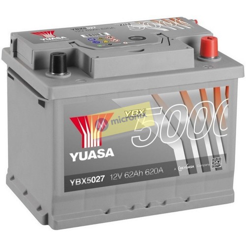 YBX5027 12V-62Ah 620A(EN) bezúdržbová autobaterie YUASA. Bezúdržbové akumulátory dodáváme nalité, nabité a zasíláme dopravní službou Toptrans!
