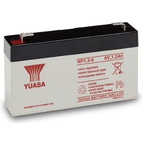 NP1,2-6 6V/1,2Ah záložní, bezúdržbový, VRLA, uzavřený, akumulátor od firmy YUASA. Technologie AGM. Určený nejen pro záložní zdroje UPS, EZS, EPS atd.
