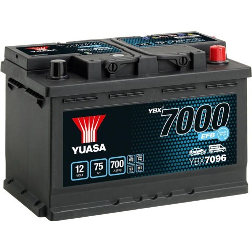 Akumulátor YBX7096 je konstruován pro vysoký výkon při startech a až pro 270 000 startů po dobu jeho životnosti. Řada akumulátoru YBX7000 je kontruovaná jako typ akumulátoru s technologií EFB s elektrolytem absorbovaným v separátorech z polyesterových vláken a přídavkem uhlíku a lithia v deskách akumulátoru. Díky zvýšené cyklické odolnosti a konstruci pro časté starty je ideální pro instalaci ve vozidlech se systémem START-STOP. Každý bezúdržbový akumulátor je opatřen držadlem pro pohodlné přenášení. Jedná se o novou řadu autobaterií výrobce YUASA.