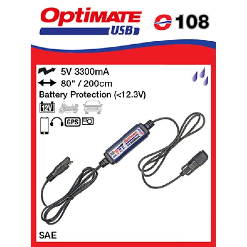 O108 příslušenství k Accumate a Optimate - SAE univerzální nabíječka s voděodolnou zásuvkou USB 3,3A