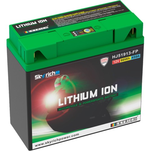 \nVšechny motocyklové startovací lithiové (LiFePO4) akumulátory výrobce Skyrich mají až 40 násobně větší vybíjecí proud než je jejich kapacita. Z důvodu použití lithiové technologie je motobaterie HJ51913-FP až o 66% lehčí než tradiční olověná baterie a dosahuje životnosti až 2000 cyklů nabití. Každý moto-akumulátor LiFePO4 značky Skyrich má nízké samovybíjení. Skladovatelnost je až 1 rok při teplotě do 25°C. Výrobce doporučuje pravidelné nabíjení minimálně jednou za 6 měsíců. Akumulátor HJ51913-FP je možné nabíjet jak nabíječkou určenou pro LiFePO4, tak i nabíječkou určenou pro bezúdržbové akumulátory. Tím odpadá nutnost koupě nové nabíječky. Použitá nabíječka nesmí mít funkci automatické desulfatace! Velikou výhodou proti bezúdržbovým akumulátorům je výše nabíjecího proudu. V případě nutnosti je možno nabíjet až 10x vyšším proudem, než je kapacita baterie. Tímto způsobem je možné motobaterii plně nabít za přibližně 6 minut. Akumulátor HJ51913-FP je použitelný v jakémkoli motocyklu. Když je nabíjecí napětí naprázdno v rozmezí 14,0V - 15,0V, NENÍ nutná žádná úprava nabíjecího systému a instalace motocyklu.