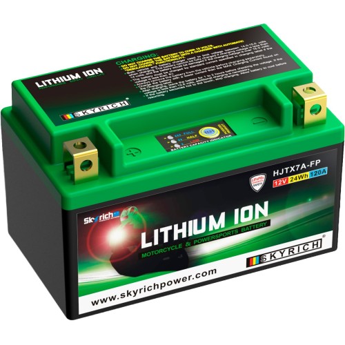 \nLithiové akumulátory Skyrich LiFePO4 jsou známé svými malými rozměry. Dodávají se s distančními podložkami pro uzpůsobení jakémukoli bateriovému prostoru v motocyklu. Při správném používání nehrozí riziko výbuchu nebo požáru, jako je tomu u jiných lithiových akumulátorů. Akumulátor HJTX7A-FP je šetrný k životnímu prostředí, protože neobsahuje jedovaté kovy jako olovo, rtuť či kobalt. Neobsahuje ani kyselinu sírovou, jako je tomu u olověných akumulátorů, a proto je použitelný v jakékoli poloze, včetně \"vzhůru nohama\". Akumulátor se dodává naplněný, přednabitý, připravený k okamžitému provozu.
