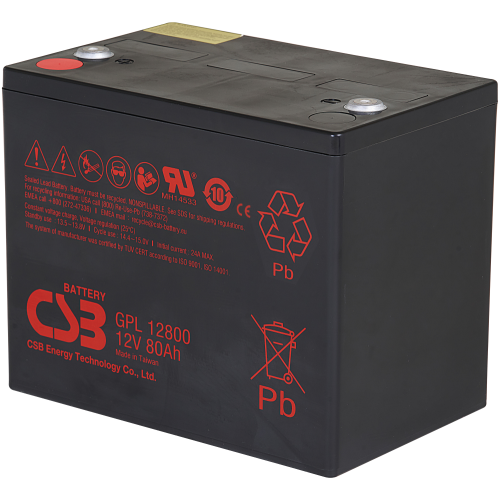 \nŘada akumulátorů GPL používá nejnovější Valve Regulated Lead-Acid (VRLA) technologii s očekávanou životností 8 až 10 let v režimu „Standby“. Akumulátor GPL12800 je vytvořen pro velký výkon, dlouhou životnost. Tak jako ostatní baterie od CSB, jsou i tyto akumulátory bezúdržbové, uzavřené a pracující v jakékoli poloze.