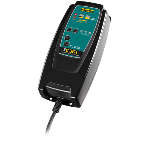 SM C36L – automatická kompaktní nabíječka baterií s udržovacím režimem (12V, 1,2 – 75 Ah). Výrobce firma DECA. Nabíječka SM C36L je určená pro nabíjení Lithiových (LiFePO4) akumulátorů o kapacitě 1,2 Ah – 75 Ah.