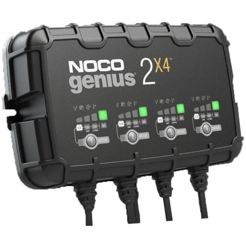 Noco Genius2X4 (6/12V - 2A) je automatická nabíječka 6V/12V akumulátorů, mající zároveň funkci desulfátoru a udržovací nabíječky. Tato nabíječka představuje 4 nezávislé chytré nabíječky v jednom pouzdře, a je tak speciálně navržena pro současné nabíjení/údržbu více akumulátorů najednou. Výstupní proud u každé nabíječky činí 2A (celkem 8A). Výrobcem je firma NOCO, Nabíječka slouží pro nabíjení olověných kyselinových, bezúdržbových, GEL, VRLA, AGM, záložních a Lithium-ion akumulátorů o kapacitě do 40Ah a pro režim udržování akumulátorů všech velikostí.
