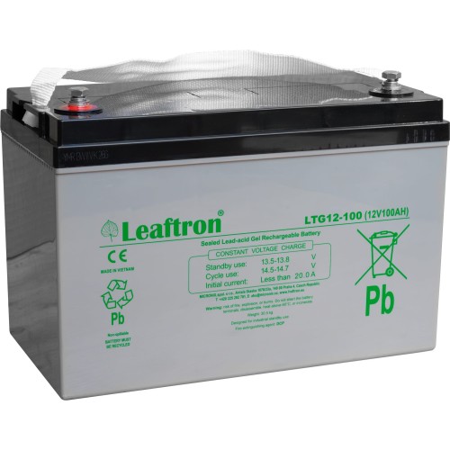 \nŘada akumulátorů LTG je určena pro nejširší rozsah aplikací. Akumulátory LTG12-100 jsou dimenzovány až na 12 let v režimu „Standby\" a mohou být užívány až pro 1700 cyklů vybití. Tak jako ostatní gelové baterie Leaftron jsou i tyto akumulátory bezúdržbové, uzavřené a pracující v jakékoli poloze.