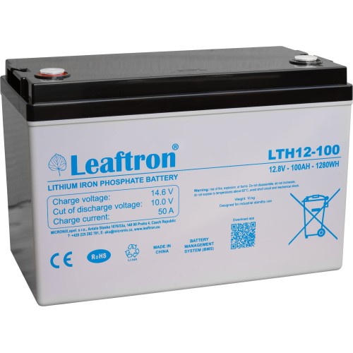 \nAkumulátory LTH12-100 mají až 5x delší životnost než olověné akumulátory a mohou být užívány pro více než 2000 cyklů vybití. Tak jako ostatní lithiové baterie Leaftron jsou tyto akumulátory nejen bezúdržbové, uzavřené, ale také inteligentní a pracující v jakékoli poloze.