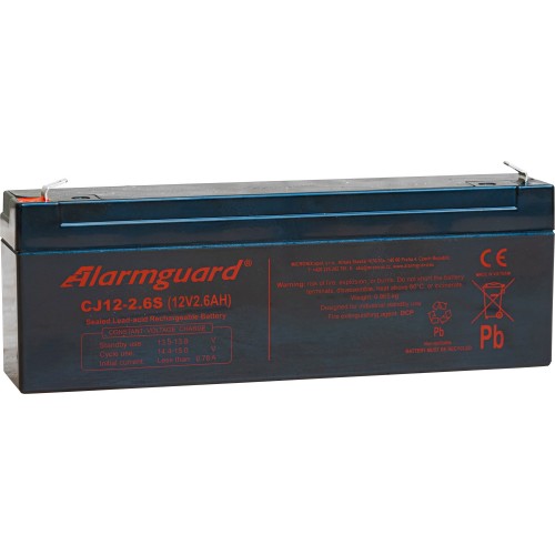 CJ12-2.6S 12V 2.6Ah - záložní , bezúdržbový, VRLA, uzavřený, akumulátor značky ALARMGUARD. Technologie AGM. Určený převážně pro EZS, EPS.