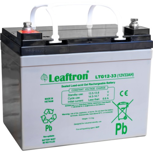 \nŘada akumulátorů LTG je určena pro nejširší rozsah aplikací. Akumulátory LTG12-33 jsou dimenzovány až na 12 let v režimu „Standby\" a mohou být užívány až pro 1700 cyklů vybití. Tak jako ostatní gelové baterie Leaftron jsou i tyto akumulátory bezúdržbové, uzavřené a pracující v jakékoli poloze.