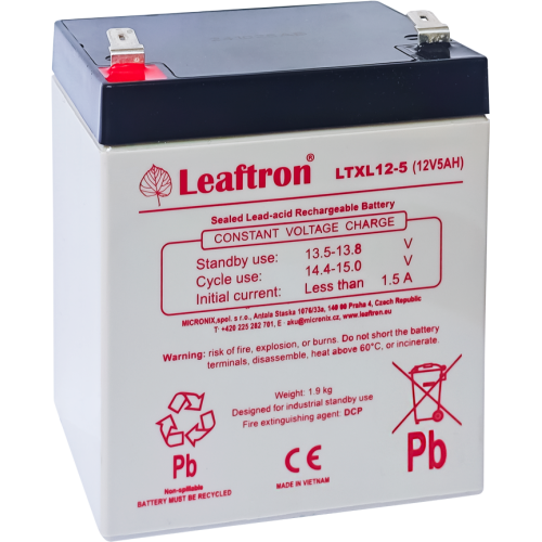 \nŘada akumulátorů LTXL je speciálně vytvořena pro aplikace s vyšším stupněm vybíjení a dlouhou životností. LTXL12-5 T2 je vytvořena jako malá a lehká baterie, se servisní životností až 9 let v režimu „standby\". Díky své inovované konstrukci, se zvýšil výkon LTXL řady o více jak 20% oproti ostatním porovnatelným produktům. Tak jako ostatní baterie Leaftron, jsou i tyto akumulátory bezúdržbové, vysoce účinné, uzavřené a pracující v jakékoli poloze.